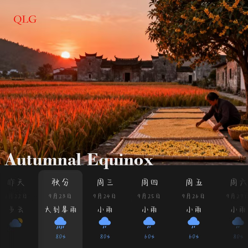 A Chinese agricultural proverb says, "On the night of the White Dew and the Autumnal Equinox, each night is colder". Remember to bring an umbrella and stay warm in rainy day.